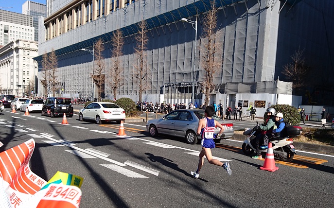 日比谷入江埋立地を走る箱根駅伝ランナー 1月3日午後