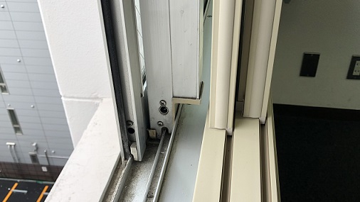 今回の内窓工事は騒音のクレームの多かった7Fホールのみで実施しました。8Fホールも騒音のでる基礎解体工事現場の方向に窓がありますが、7Fに比し開口部が少なくあまり騒音を感じません。またクレームもありません。そのため今回は内窓取り付け工事を見送りました。ただドアや窓の隙間を防ぐ対策はとっております。