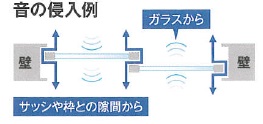 音は、空気の圧力変化による空気の振動(縦波)で伝わりますが(音波)、外からくる音は建物の厚い壁ではね返されます。ところが建物の壁の開口部と云われる窓やドアは壁よりかなり薄くなっています。強烈な音波をはね返すには不十分です。音の影響を受けやすいこの開口部を補強するのが防音対策の基本。騒音対策は窓・ドア対策といえます。